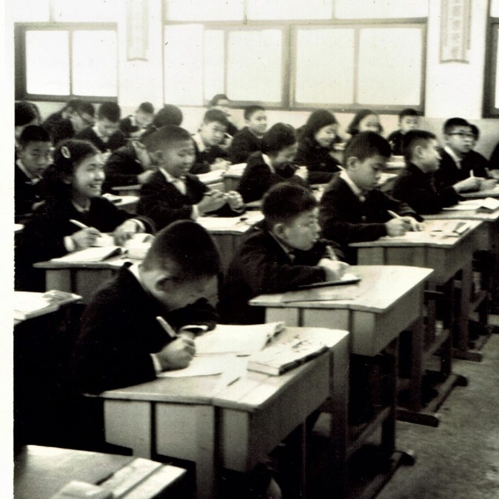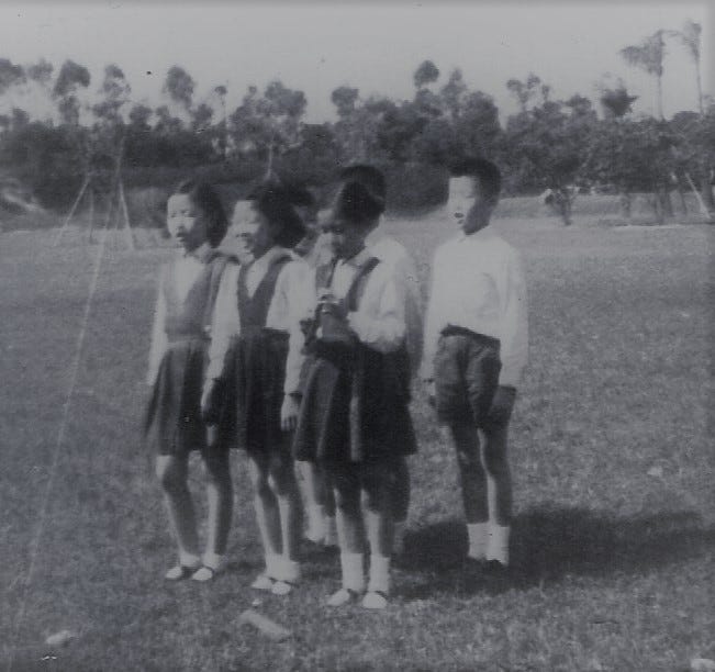 我有參加過鼓笛隊,因為記得穿過上面那套紅上衣、白長褲的樂隊制服。如果沒記錯,那套制服是屬於一位高幾屆的靜心學長桂至(志)剛,穿完就還了…。名字還記得,是因為姓桂的太稀少吧。(林鼎貴)